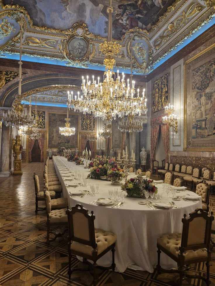 Inside, the mansion echoed with quiet elegance. Several staff members moved through the halls adjusting flowers, preparing the royal breakfast, maintaining perfection. In the heart of the palace, the central hall, three figures sat like timeless pillars of the dynasty.
